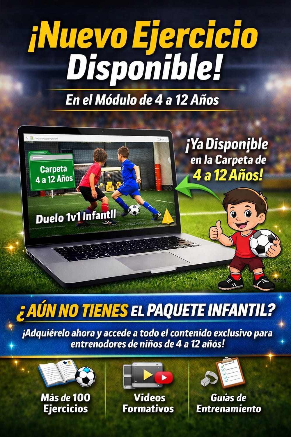 En este Mega Pack contarás con más de 80 ejercicios diseñados para fútbol infantil